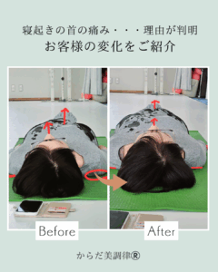 このBeforeの写真の時、何も考えないで仰向けになってくださいとお声がけしただけなので、ふだんの寝ている時がこの状態ということ。