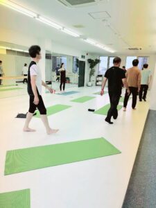 レッスンでは、股関節、足首、肩、肩甲骨・お尻などを基本的な動きで緩めていくたびに、